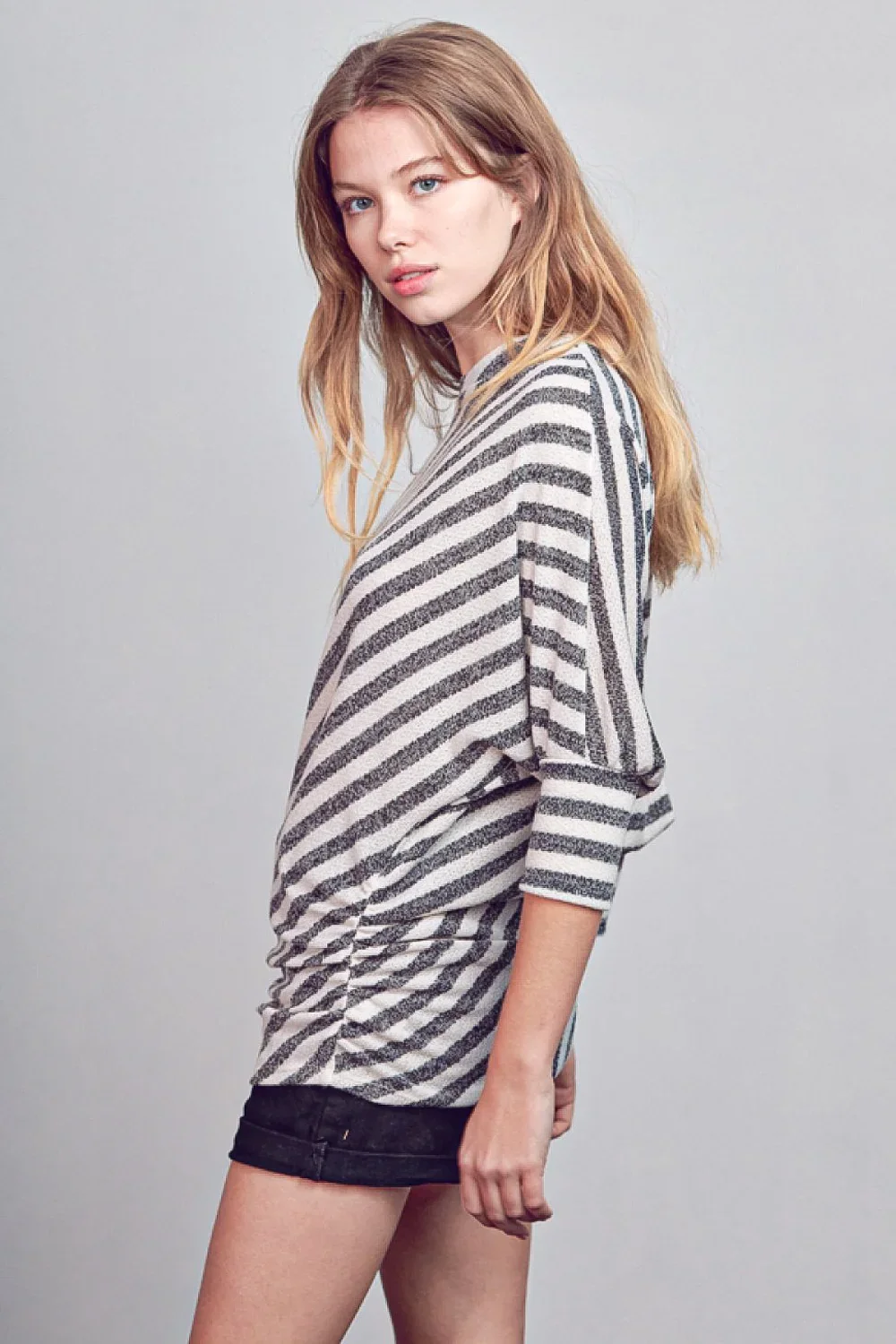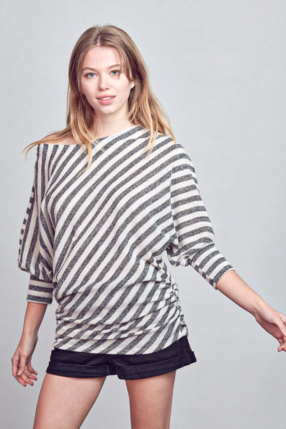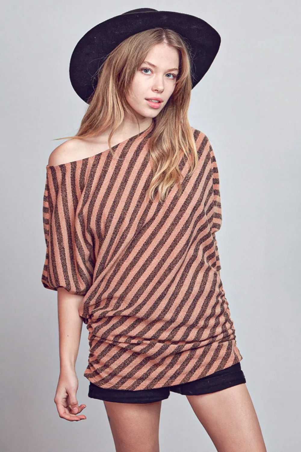 Plus Size Diagonal Striped Off Shoulder Dolman Sleeve Casual Top
