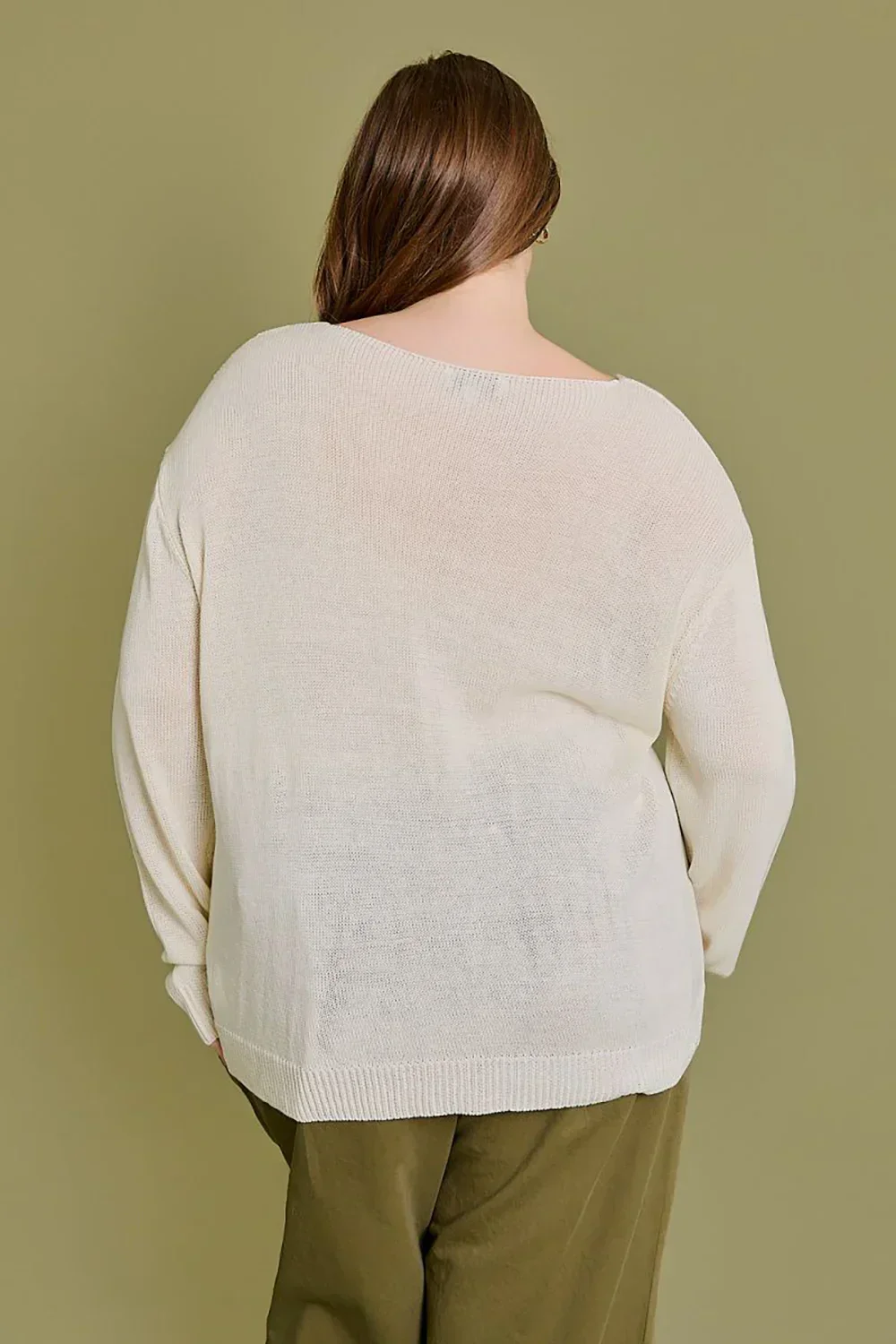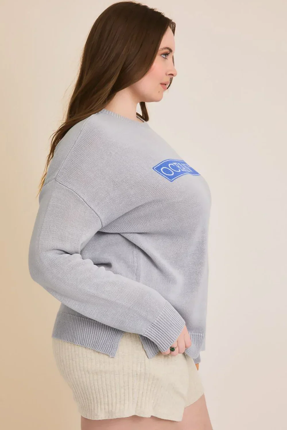 Plus Size OCEAN BLVD Graphic Knit Long Sleeve Crew Neck Boutique Sweater