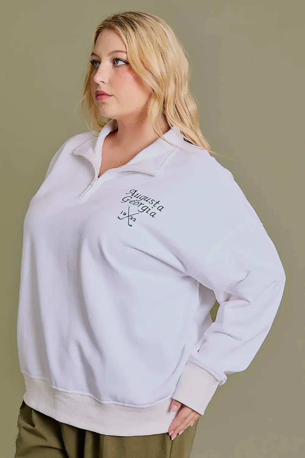 Plus Size Augusta Georgia Golf Club Quarter Zip Cotton Pullover Sweatshirt