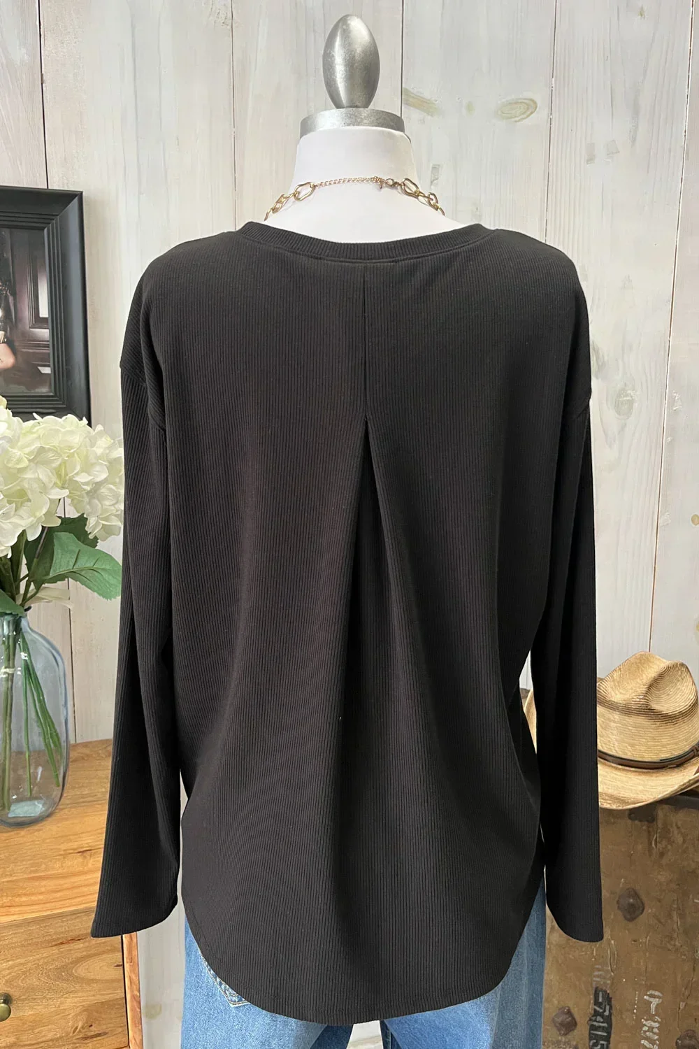 Soft Ribbed Knit Long Sleeve Scalloped Hem Relaxed Fit Oversize Boutique Top
