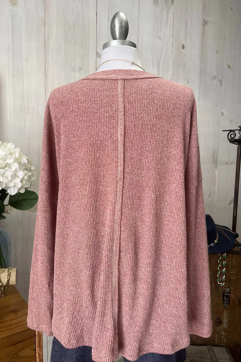 Dusty Rose Pink Ribbed Knit Babydoll Peplum Long Sleeve Sweater Top