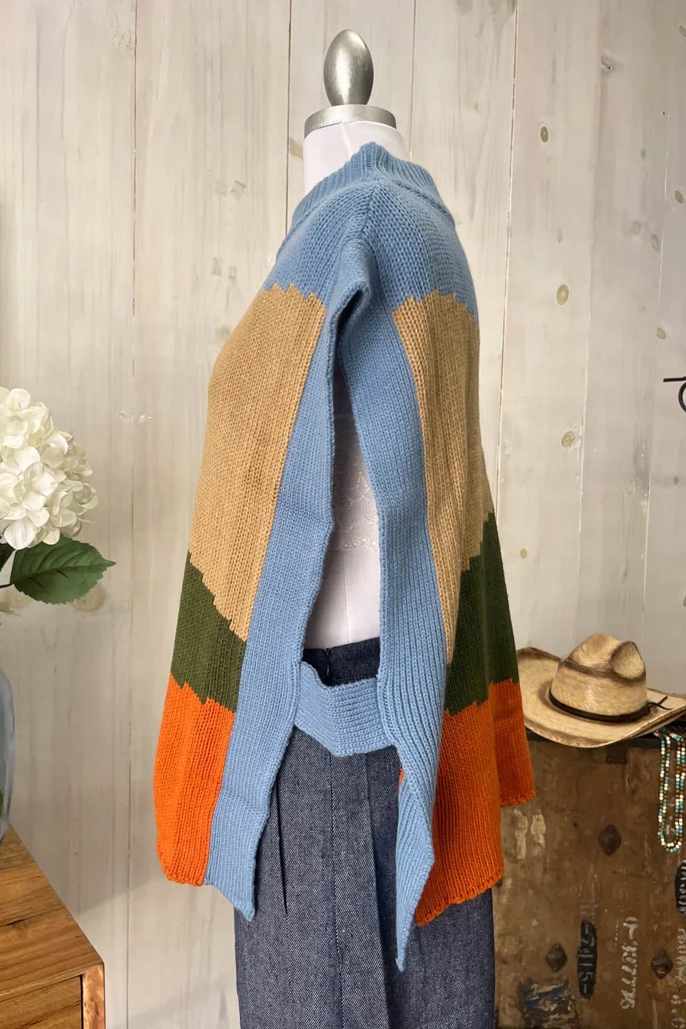 Colorblock Abstract Pattern Turtleneck Sleeveless Knit Sweater Vest