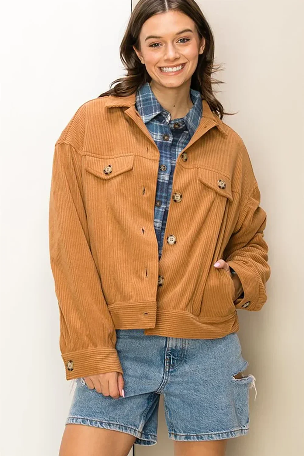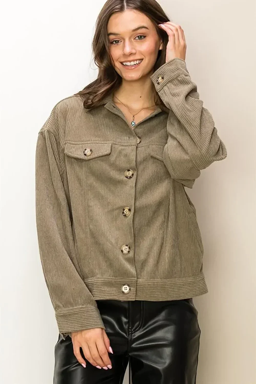 Corduroy Button Up Jacket for Boutique Women's Trendy Fall Outerwear