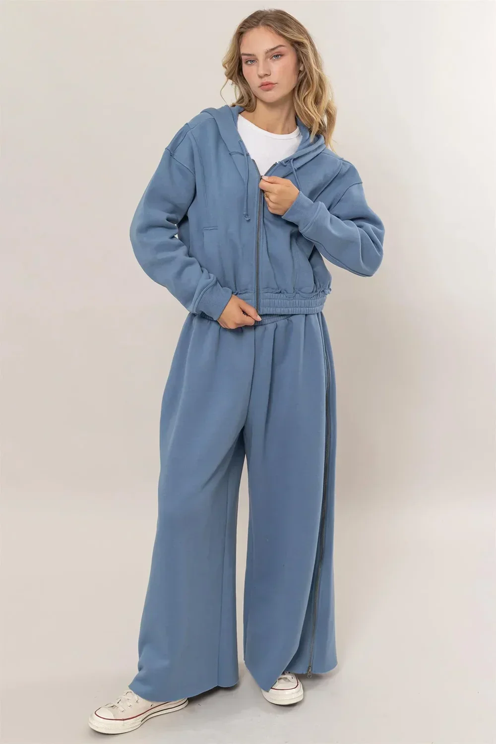 Scuba High Waist Wide Leg Drawstring Lounge Powder Blue Sweatpants